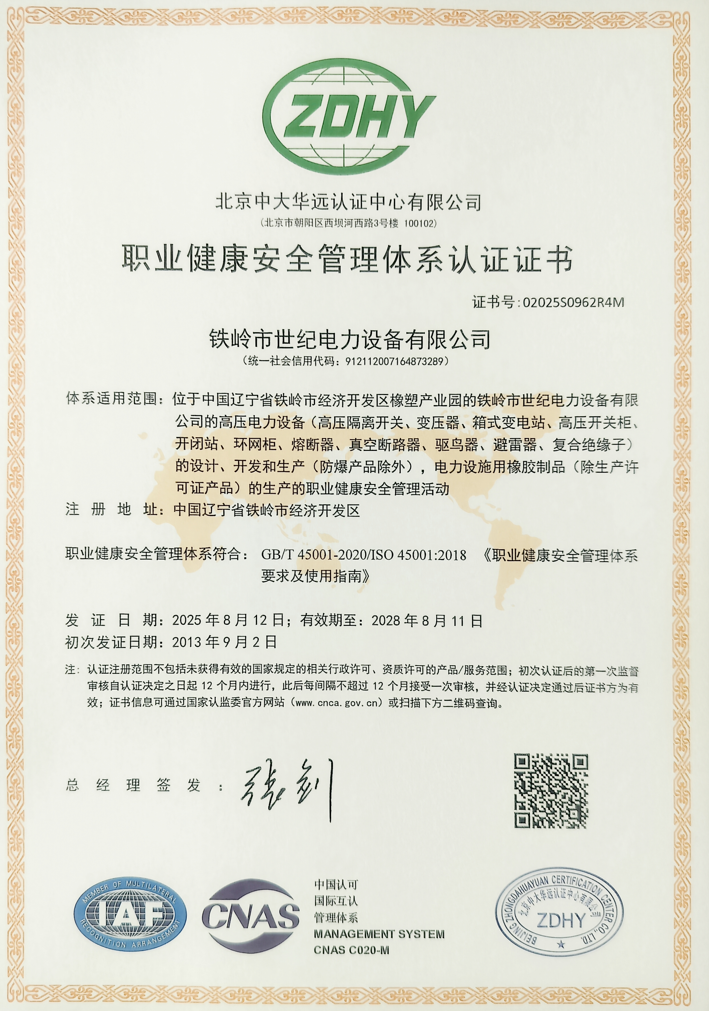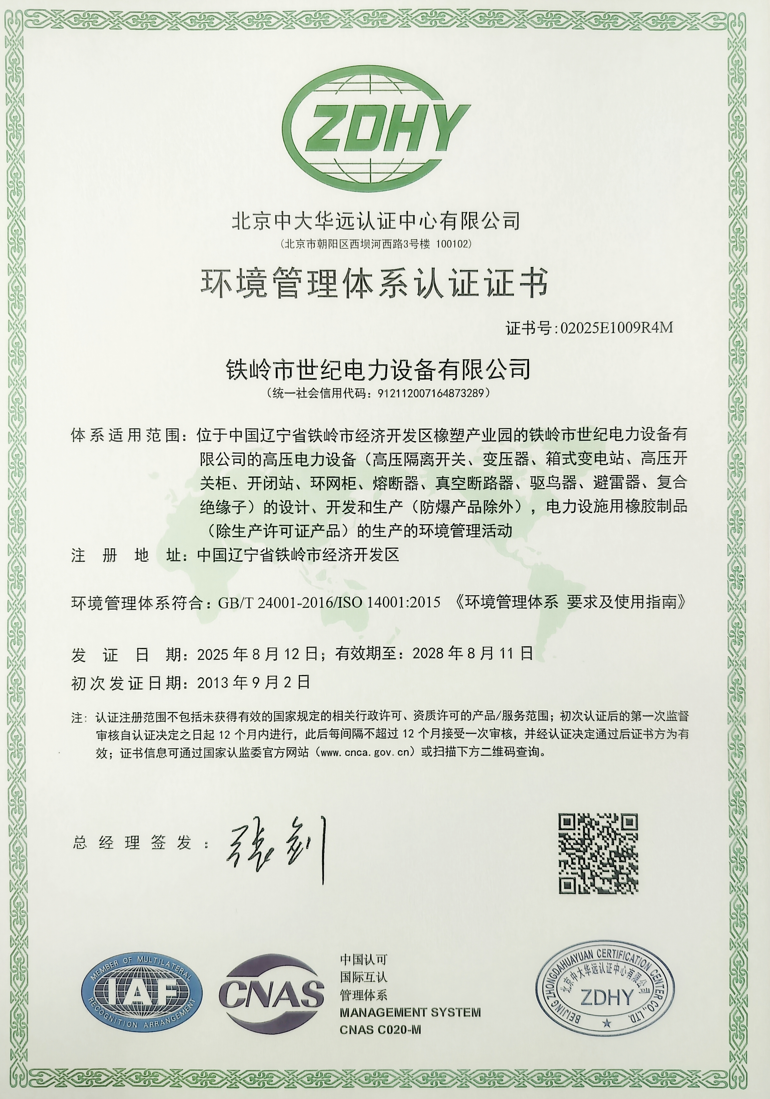 鐵嶺市世紀電力設(shè)備有限公司是集科研開發(fā)、生產(chǎn)制造、用戶服務(wù)于一體的國家高新技術(shù)企業(yè),始建于1999年,位于鐵嶺經(jīng)濟開發(fā)區(qū),占地面積5萬余平方米,建筑面積2萬余平方米。主要從事國家電網(wǎng)配套戶外高低壓隔離開關(guān)、電力電纜、變壓器成套裝置、高低壓開關(guān)柜、箱式變電站、絕緣子等產(chǎn)品的研發(fā)、生產(chǎn)和銷售。公司現(xiàn)有國家發(fā)明專利6項、實用新型專利9項,公司通過了ISO9001國際質(zhì)量管理體系認證、ISO14001環(huán)境管理體系認證和ISO 45001職業(yè)健康安全體系認證。
